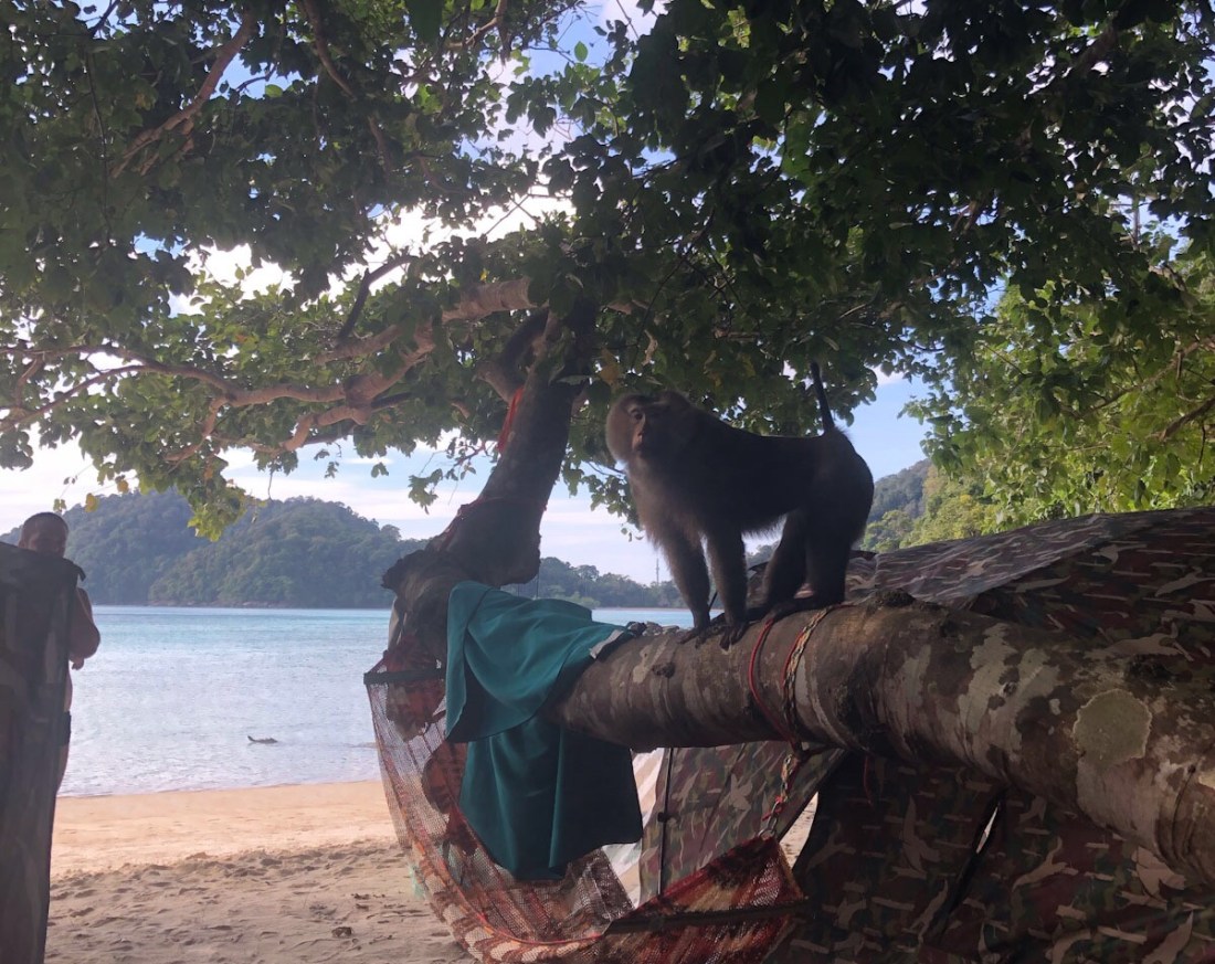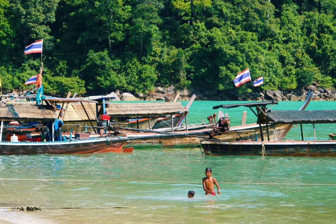 Achamos que nossos dias lá seriam apenas pautados por longas esticadas na areia e mergulhos em águas incríveis, mas nós nos aventuramos na nossa própria trilha (como já relatado acima), fizemos yoga com uns tailandeses simpáticos, jogamos frisbee com outros tailandeses simpáticos, jogamos papo fora com o tal do coreano (que mal falava inglês) e com um francês que adorava nos dizer como ele nadava bem e ainda visitamos uma vila de “ciganos do mar”, uma antiga tribo de pessoas que já foram nômades aquáticos, mas hoje estão estabelecidos em uma comunidade dentro do parque nacional. Olha, foi uma estadia movimentada.