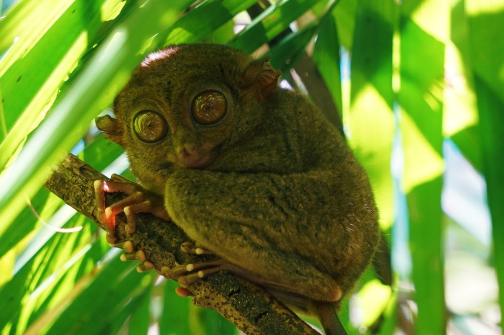 Dentre essas atividades o maior destaque foi um tour pelo interior da ilha, em que passamos por diversos pontos diferentes ao longo do dia. Adorei conhecer o Tarsius, um bicho nativo de uma parte específica do sudeste asiático que é totalmente único. Ele tem olhos grandes como de mangás (quadrinho japonês), dedinhos pequenos e um rabo duro e asqueroso. Parece um esquilo que deu errado. E tem mais, se você fizer muito barulho ele comete suicídio batendo a cabeça sem parar contra o tronco de árvores. Pensa em um bicho que precisa de mais tratamento psicológico que a sua prima que acabou de anunciar para a família toda que só “se alimenta de luz” . É o Tarsius.
