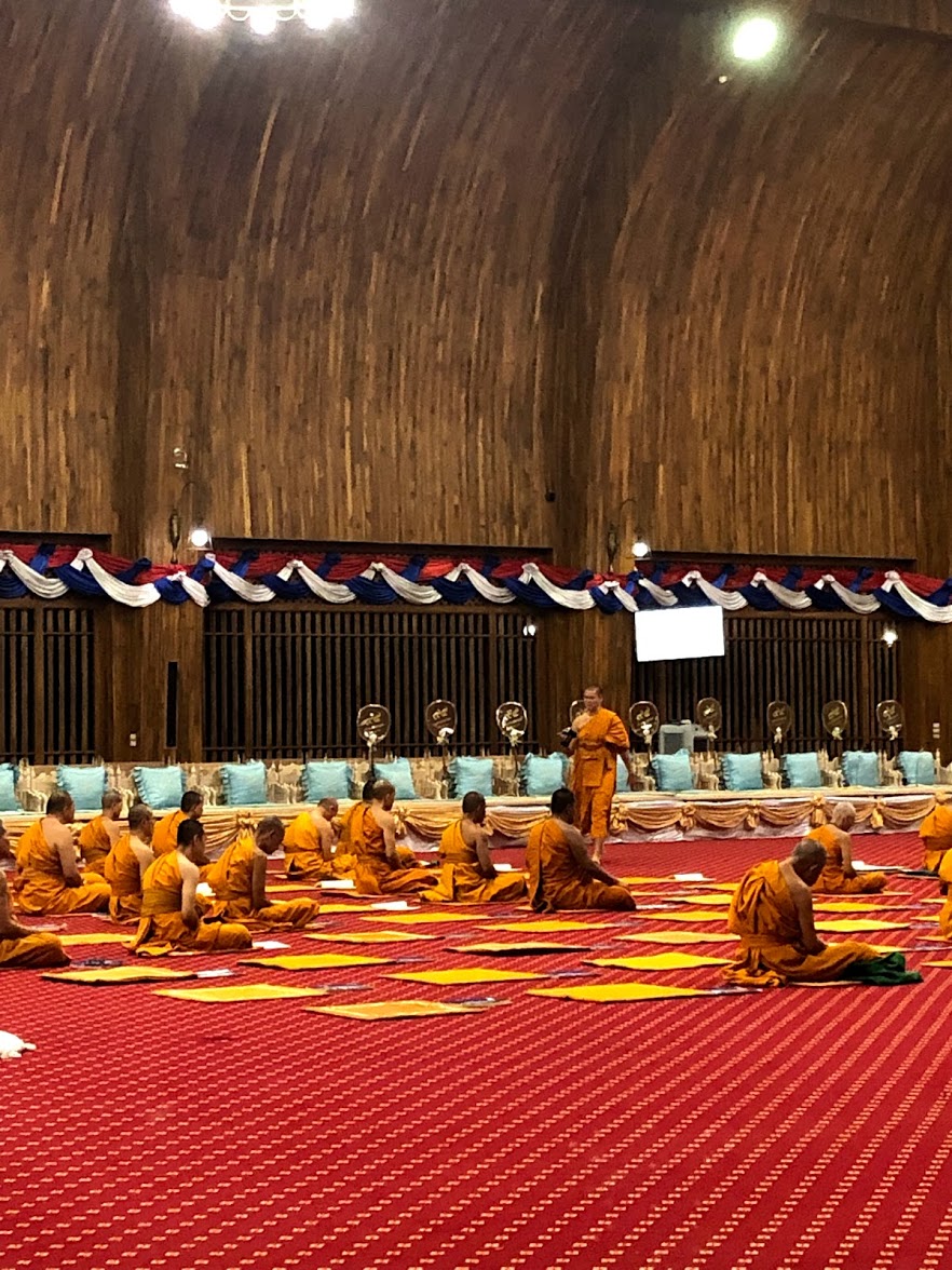 Bom, logo chegamos e já recebemos nossa introdução ao local. O retiro fica dentro do complexo de um monastério super antigo e um local sagrado para a região, por isso tínhamos que seguir à risca as regras dos monges. Ou seja, isso incluía seguir alguns códigos e mandamentos budistas, como dormir apenas 6 horas por dia (das 10h até às 4h), não comer nenhum sólido após meio dia (almoço era às 11h), não matar (nada, não só gente, mas também qualquer inseto, bicho, ácaro e o caramba), sem toque ou relações sexuais e por aí vai. Também não podíamos consumir nenhum tipo de entretenimento, como ler, escutar música, assistir Netflix e etc… essa era uma regra específica para quem estava em período de curso, pois os monges andavam pra lá e pra cá com o celular, aposto que devem ser todos otakus. Os professores do retiro também. Outra regra válida apenas para esse período de 15 dias era manter o máximo de silêncio possível, não era proibido falar, mas quase todo mundo ali estava em período de meditação e ninguém queria desfocar. Isso incluía não falar com a pequena Marina, minha bela cônjuge.