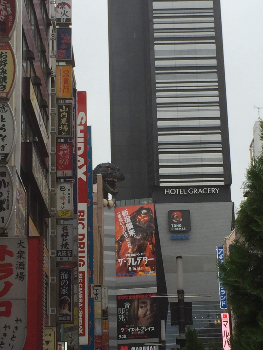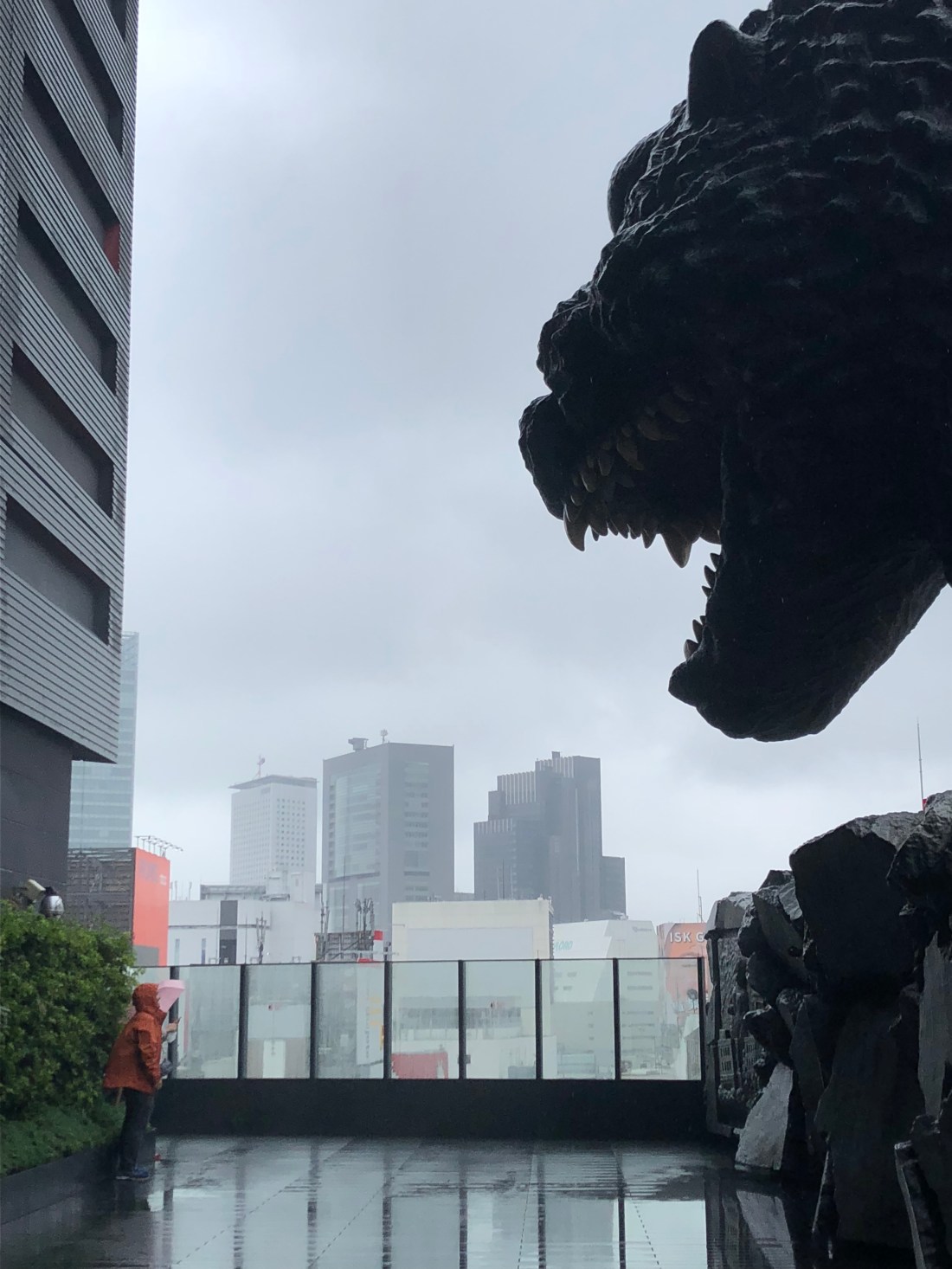 Aliás, pense em duas coisas que tem em todo lugar em Tóquio: só dá Pokémon e Dragon Ball, graças a deus. E Godzilla. Visitamos um hotel que nem sei o nome, mas que tem um Godzilla gigante “anexado” a ele, como se estivesse atacando o prédio. Se você subir até o restaurante consegue ir na sacada e ficar de frente com a cabeça do Godzilla.