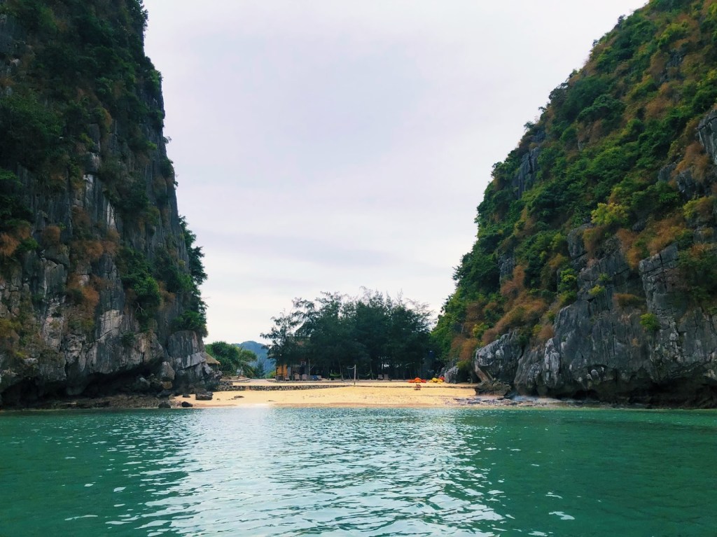 A noite de ano novo veio, passou e nós acordamos com uma leve ressaca e uma nova amizade com um divertido grupo de indianos. O segundo (e último) dia do passeio também foi arruinado pelo clima glacial, e olha, poderia ter sido incrível. Digo isso porque passamos o dia e a noite em um alojamento em uma mini-ilha particular no meio da loucura visual que é Ha Long Bay. Um lugar escondido, recluso, com direito a praias exclusivas, rede de vôlei, churrasqueira e até uma bolinha de futebol para os mais talentosos. Teria sido incrível com sol e calor, mas o universo nos mandou um céu com cor de TV sem sinal e ventos dignos da região mais hiperbórea da Suécia. Aproveitamos a praia com nossos casacos de neve, que compramos para usar no Nepal. Você sabe que um dia é triste quando nem a vontade de tomar cerveja aparece. Mas foi bom, mesmo não sendo incrível.