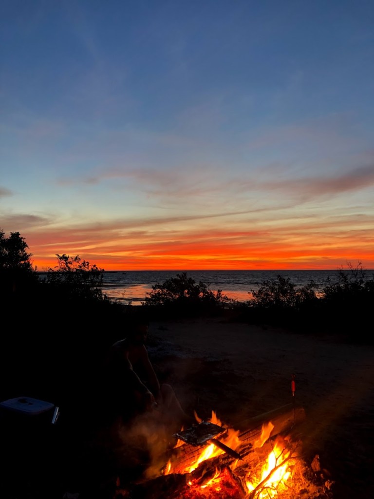 Mas não foi qualquer campervan. Não foi nem ao menos uma boa campervan. Eu não diria nem que era uma campervan “média”. Não. Foi um furgão Suzuki saído direto do Japão feudal, apenas levemente modificado e com uma pintura externa singular. Ele tinha compartimentos de madeira acoplados em sua parte traseira e alguns equipamentos, como colchonetes, fogareiro, panelas, pia, etc… tudo bem simples. Caso você busque por “van life” no YouTube vai achar diversos vídeos sobre carros incríveis e ajustados de forma magnífica, com modificações inteligentes que criam um senso de conforto e autonomia. Não era o nosso caso. Basicamente alugamos uma “rape van” com 140 mil kms rodados e com colchonetes velhos embutidos, mas foi divertido. Pelo preço esperávamos algo melhor, mas a vida nos fez de otários de novo. Ao menos fomos otários felizes por alguns dias (assim que aprendemos a lidar com os mosquitos).