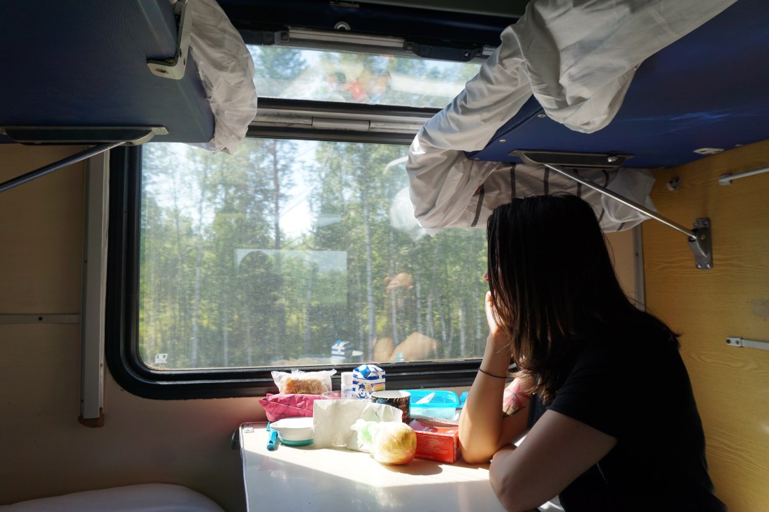 Nossa jornada começou logo após a corrida contra o tempo em São Petesburgo, em que pegamos nosso trem faltando 5 minutos para ele partir (e lá eles são pontuais). Após achar nosso vagão embarcamos cansados, suados e duas ótimas representações do que são seres humanos sem condicionamento físico. Cambaleamos até nossos lugares e quase morremos para colocar nossas mochilas no local adequado, acima de nossas camas, que eram ambas a parte de cima do beliche.